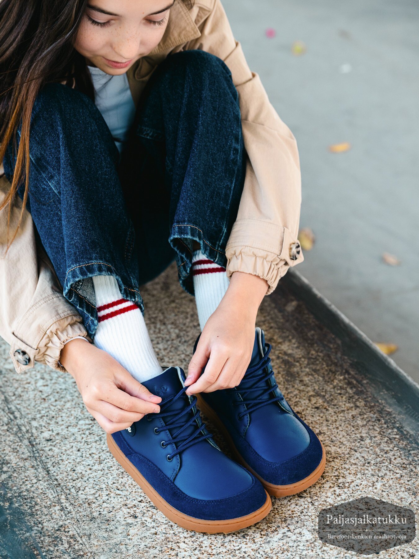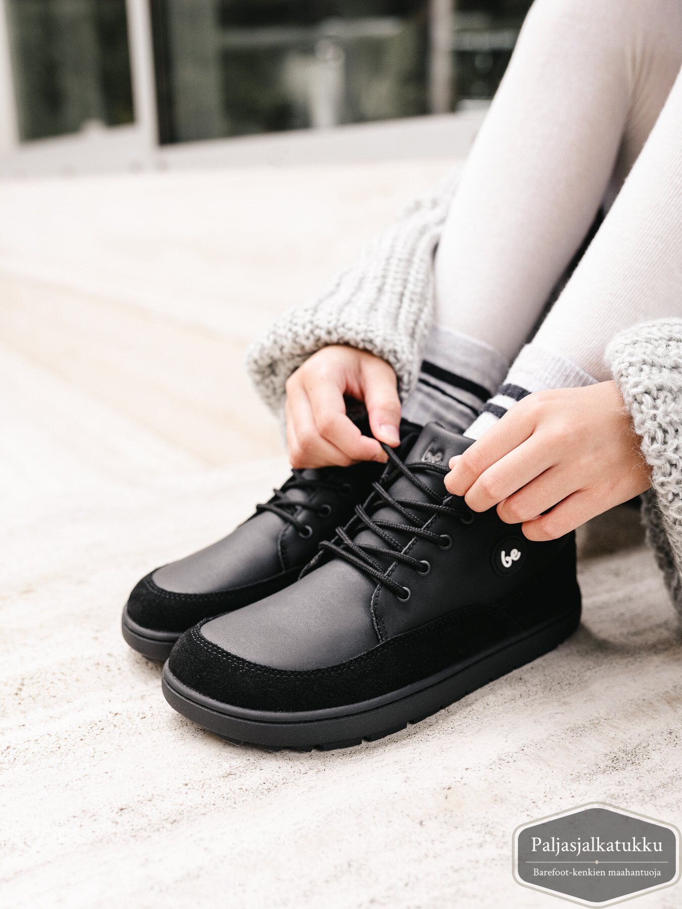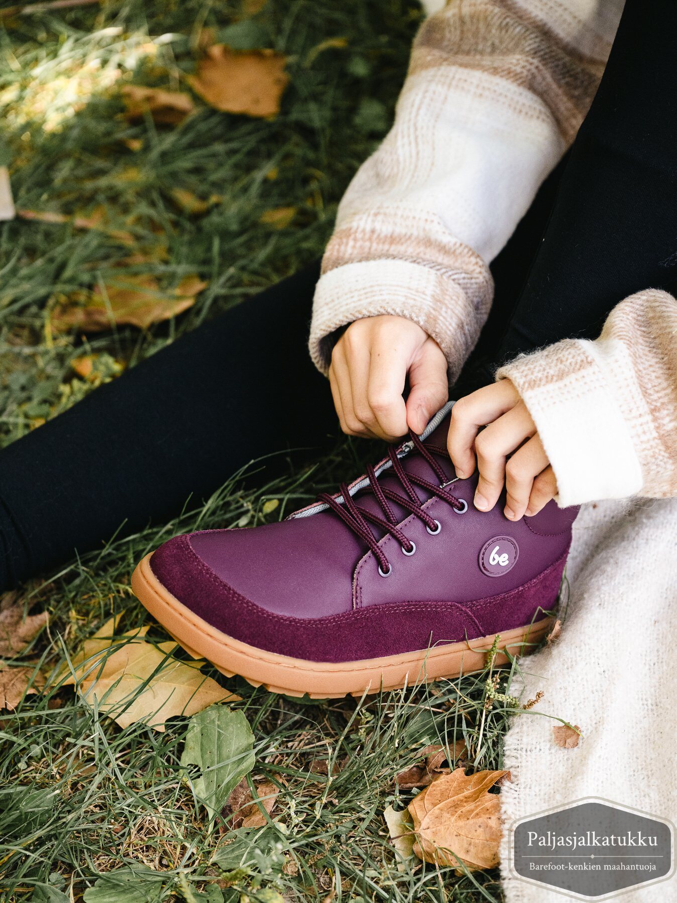 Huomaathan, että kengänpohjien reunojen liimaus jätetään tarkoituksella hieman vajaaksi, ettei päälliseen tulisi liimatahroja. Pohjat on siis asianmukaisesti liimattu eikä kyseessä ole valmistusvirhe, vaikka pohjan reunassa olisi pieni rako. Käytön myötä rako voi tulla selvemmin esiin, koska paljasjalkakengän pohja on taipuisa. Rakoilu ei tarkoita sitä, että pohja olisi irtoamassa. Se ei myöskään vaikuta kengän ominaisuuksia heikentävästi. Näissä kengissä pohja on kiinnitetty myös ompeleella, joten liimaus on jätetty vielä enemmän vajaaksi.